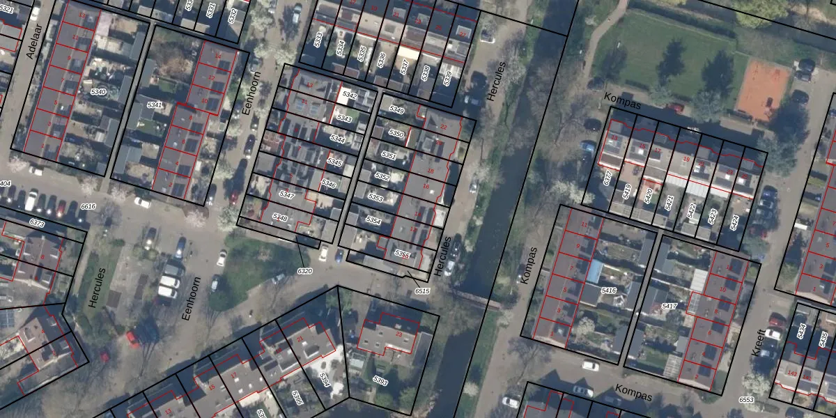 Gebruik de zoekbalk of klik op een perceel voor informatie over de adressen binnen dit perceel.