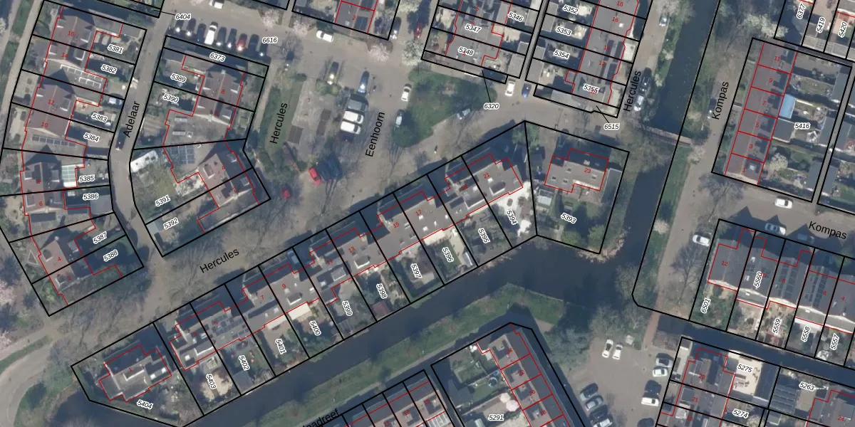 Gebruik de zoekbalk of klik op een perceel voor informatie over de adressen binnen dit perceel.