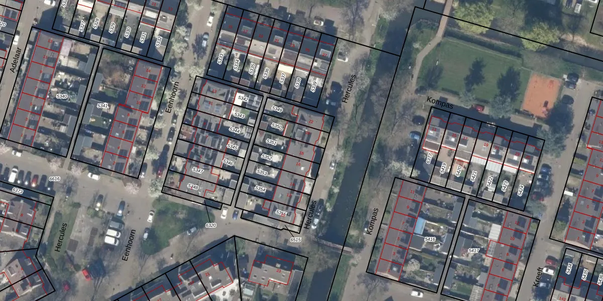 Gebruik de zoekbalk of klik op een perceel voor informatie over de adressen binnen dit perceel.