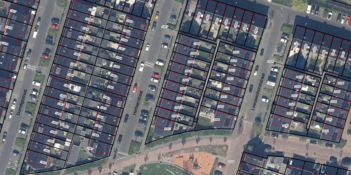 Gebruik de zoekbalk of klik op een perceel voor informatie over de adressen binnen dit perceel.