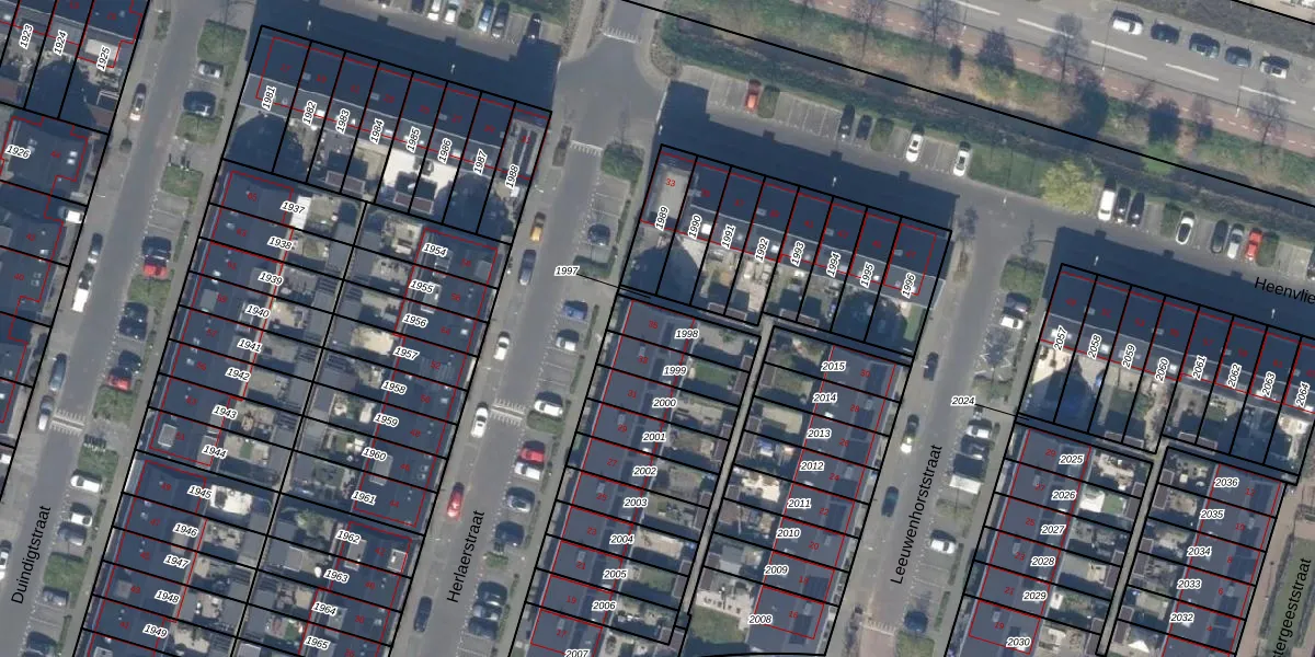 Gebruik de zoekbalk of klik op een perceel voor informatie over de adressen binnen dit perceel.