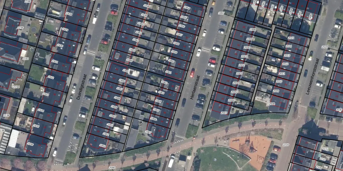 Gebruik de zoekbalk of klik op een perceel voor informatie over de adressen binnen dit perceel.