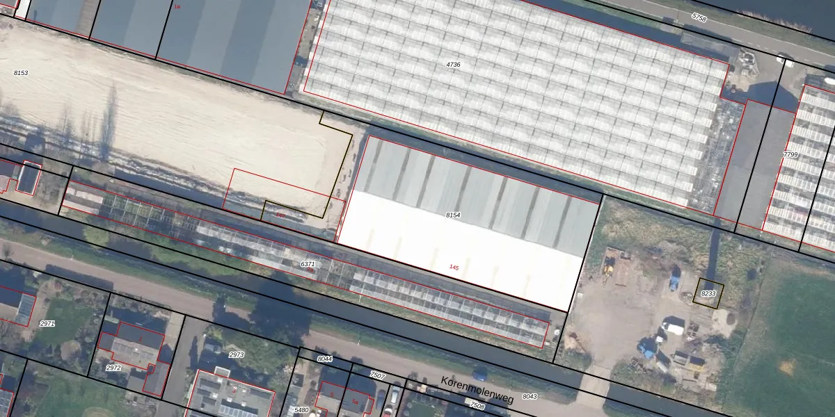 Het adres is gelegen op perceel 8154 in de sectie C en de kadastrale gemeente Bleiswijk. De kadastrale aanduiding is aldus BWK02-C-8154. Het perceel is kleiner dan gemiddeld in Bleiswijk. Het perceel is 1967 m² groot, terwijl het gemiddelde ligt op 3193,61 m². Het kleinste perceel in de kadastrale gemeente is 0 m² groot. De grootste perceeloppervlakte is 44,5 ha. Dit is het enige adres dat aanwezig is op het perceel. De huidige grenzen van het perceel zijn digitaal in de Basisregistratie Kadaster (BRK) geregistreerd op 26-11-2024.