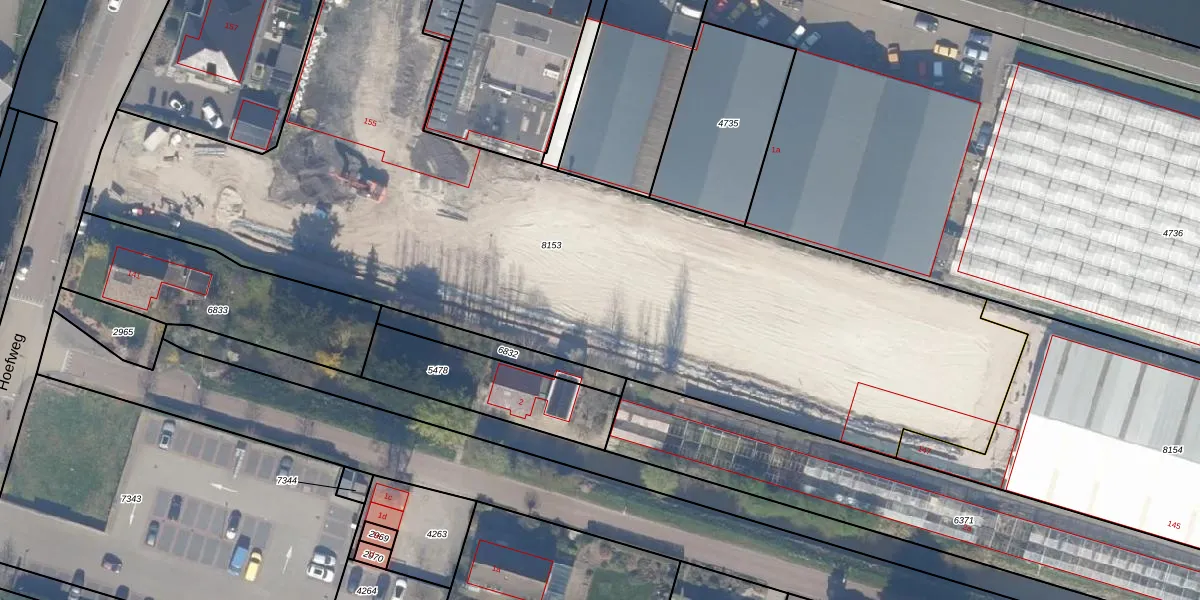 Het perceel waarop Hoefweg 151-c staat heeft een oppervlakte van 4825 m². Dit is een zeer groot perceel. De perceeloppervlakte wordt geregistreerd door het Kadaster. Gedetailleerde informatie over de maten van dit perceel kunt u vinden in het rapport Kadastrale kaart met maatvoering van Hoefweg 151-c.