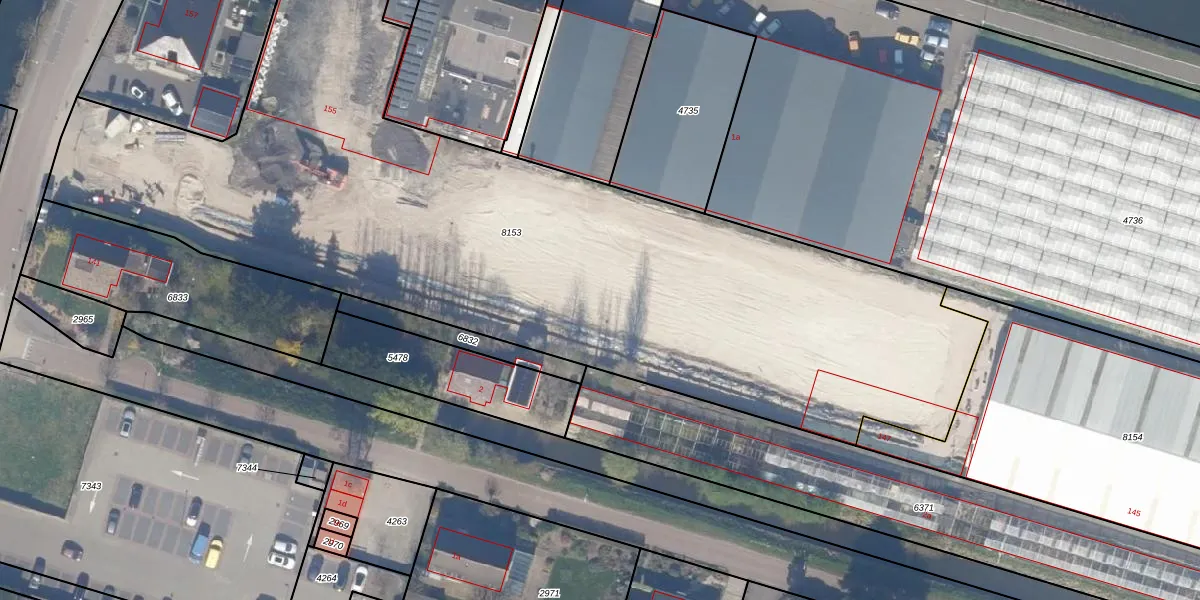 Het adres ligt op het perceel BWK02-C-8153, dat zich in de kadastrale gemeente Bleiswijk bevindt. De oppervlakte van het perceel is 4825 m². Dat is groter dan gemiddeld in Bleiswijk, waar de gemiddelde perceeloppervlakte op 3196,87 m² ligt. Het grootste perceel in de kadastrale gemeente is 44,5 ha. Het kleinste perceel heeft een oppervlakte van 0 m². Op het perceel liggen in totaal 46 adressen. De huidige grenzen van het perceel zijn digitaal in de Basisregistratie Kadaster (BRK) geregistreerd op 26-11-2024.