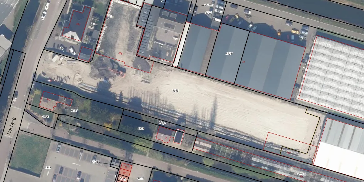 Hoefweg 153-b is gelegen op kadastraal perceel BWK02C8153. Deze kadastrale aanduiding is uniek en wordt gebruikt door het Kadaster om eigendomsrechten en andere zakelijke rechten vast te leggen. Het perceel maakt onderdeel uit van de kadastrale gemeente Bleiswijk.