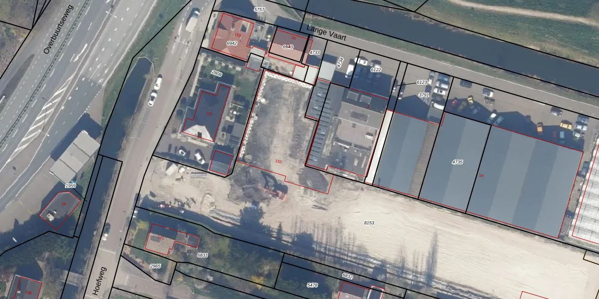 Het perceel waarop Hoefweg 155-19 staat heeft een oppervlakte van 4825 m². Dit is een zeer groot perceel. De perceeloppervlakte wordt geregistreerd door het Kadaster. Gedetailleerde informatie over de maten van dit perceel kunt u vinden in het rapport Kadastrale kaart met maatvoering van Hoefweg 155-19.
