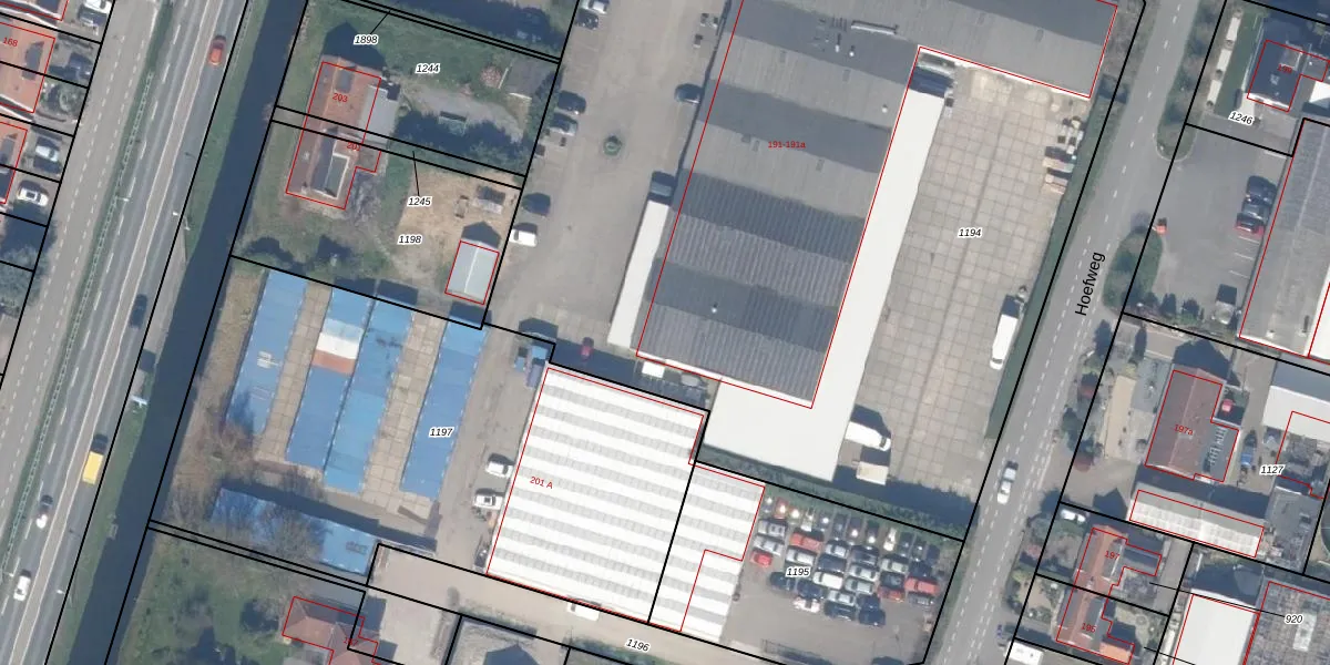 Het perceel waarop Hoefweg 191-a staat heeft een oppervlakte van 6909 m². Dit is een zeer groot perceel. De perceeloppervlakte wordt geregistreerd door het Kadaster. Gedetailleerde informatie over de maten van dit perceel kunt u vinden in het rapport Kadastrale kaart met maatvoering van Hoefweg 191-a.