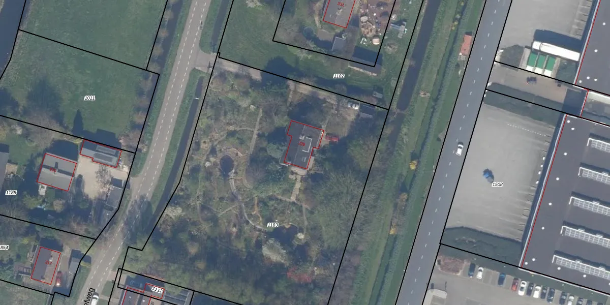 Het adres is gelegen op perceel 1183 in de sectie B en de kadastrale gemeente Bleiswijk. De kadastrale aanduiding is aldus BWK02-B-1183. Het perceel is met 4460 m² relatief groot. Het gemiddelde ligt in de kadastrale gemeente Bleiswijk op 3196,87 m². Het grootste perceel in de kadastrale gemeente is 44,5 ha. Het kleinste perceel heeft een oppervlakte van 0 m². Er zijn geen andere adressen aanwezig op het perceel. De huidige grenzen van het perceel zijn digitaal in de Basisregistratie Kadaster (BRK) geregistreerd op 30-11-2009.