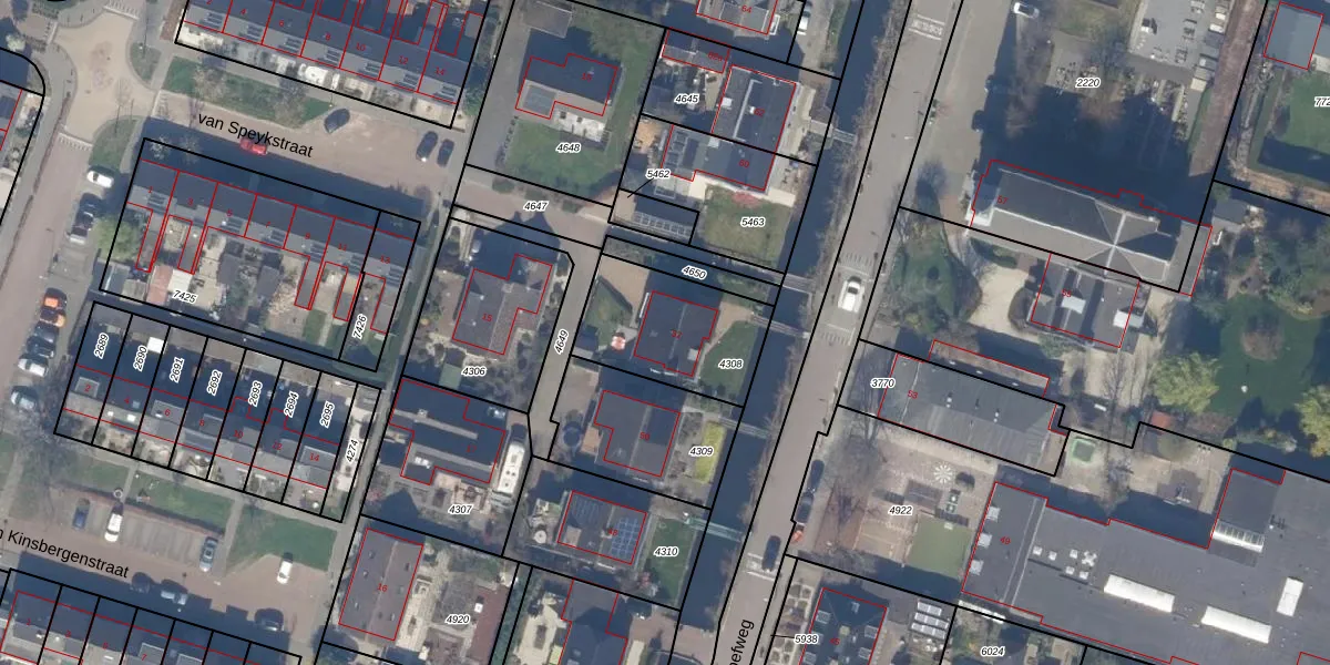 Gebruik de zoekbalk of klik op een perceel voor informatie over de adressen binnen dit perceel.