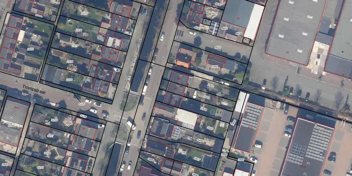 Gebruik de zoekbalk of klik op een perceel voor informatie over de adressen binnen dit perceel.