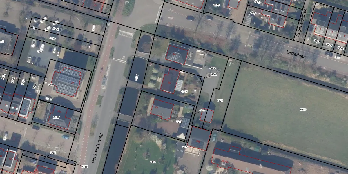Hoekeindseweg 20 is gelegen op kadastraal perceel BWK02C5904. Deze kadastrale aanduiding is uniek en wordt gebruikt door het Kadaster om eigendomsrechten en andere zakelijke rechten vast te leggen. Het perceel maakt onderdeel uit van de kadastrale gemeente Bleiswijk.