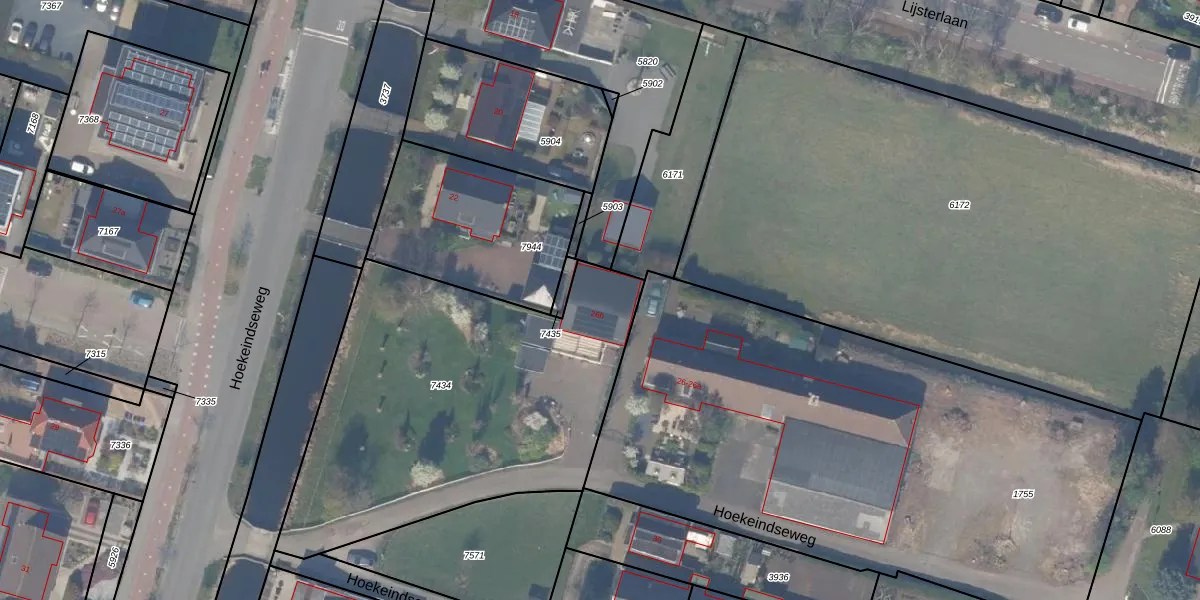 Hoekeindseweg 26-b is gelegen op kadastraal perceel BWK02C7434. Deze kadastrale aanduiding is uniek en wordt gebruikt door het Kadaster om eigendomsrechten en andere zakelijke rechten vast te leggen. Het perceel maakt onderdeel uit van de kadastrale gemeente Bleiswijk.