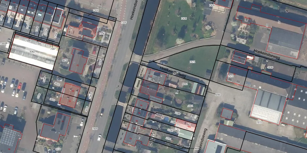 Hoekeindseweg 42 is gelegen op kadastraal perceel BWK02C6091. Deze kadastrale aanduiding is uniek en wordt gebruikt door het Kadaster om eigendomsrechten en andere zakelijke rechten vast te leggen. Het perceel maakt onderdeel uit van de kadastrale gemeente Bleiswijk.