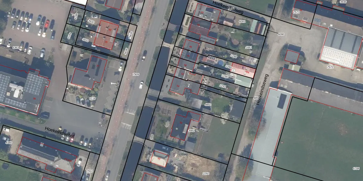 Hoekeindseweg 54 is gelegen op kadastraal perceel BWK02C4892. Deze kadastrale aanduiding is uniek en wordt gebruikt door het Kadaster om eigendomsrechten en andere zakelijke rechten vast te leggen. Het perceel maakt onderdeel uit van de kadastrale gemeente Bleiswijk.