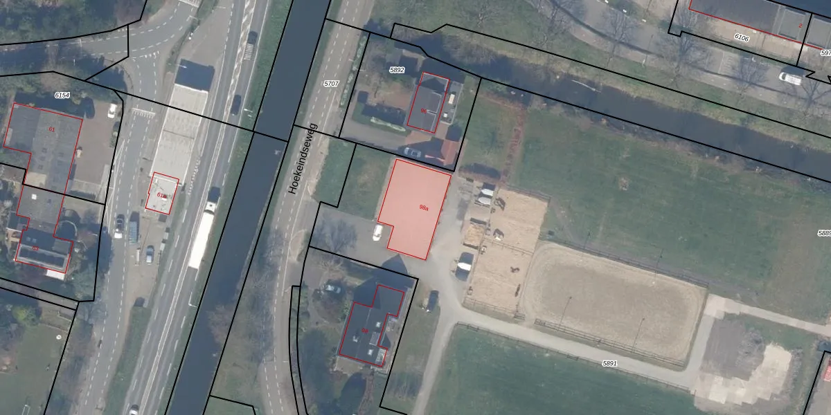 Hoekeindseweg 98-a is gelegen op kadastraal perceel BWK02C5891. Deze kadastrale aanduiding is uniek en wordt gebruikt door het Kadaster om eigendomsrechten en andere zakelijke rechten vast te leggen. Het perceel maakt onderdeel uit van de kadastrale gemeente Bleiswijk.
