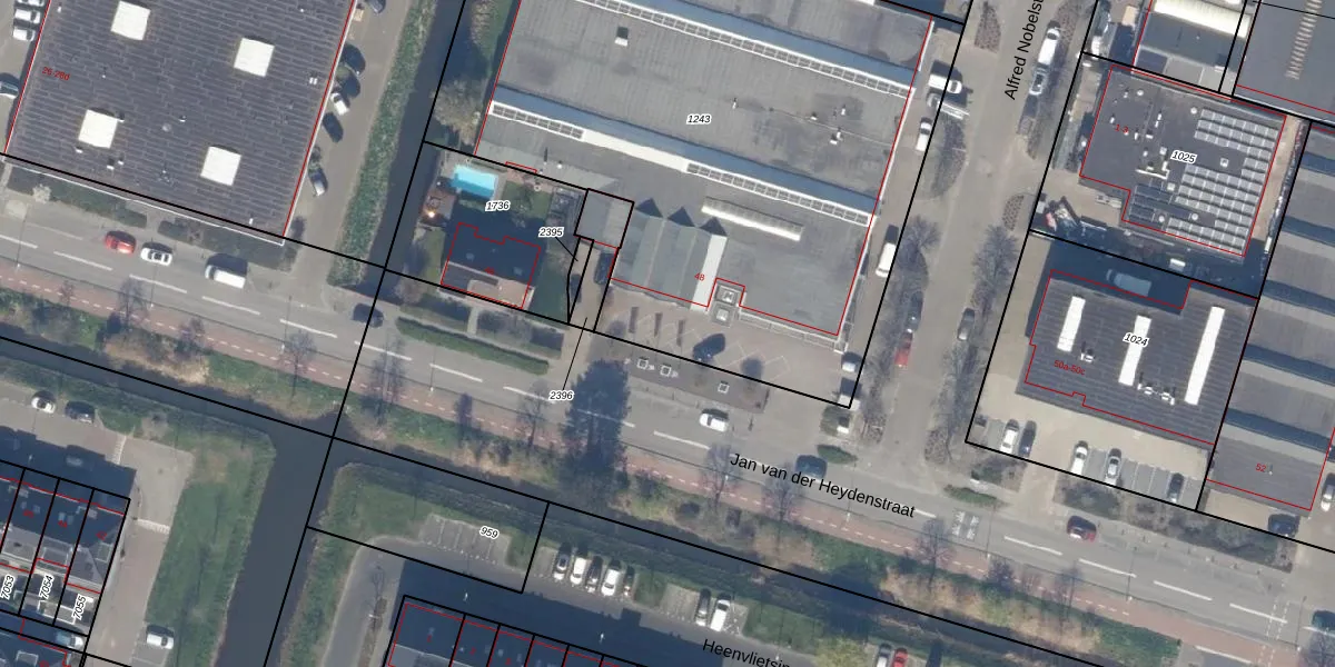 Het perceel waarop Jan van der Heydenstraat 48-8 staat heeft een oppervlakte van 3710 m². Dit is een zeer groot perceel. De perceeloppervlakte wordt geregistreerd door het Kadaster. Gedetailleerde informatie over de maten van dit perceel kunt u vinden in het rapport Kadastrale kaart met maatvoering van Jan van der Heydenstraat 48-8.