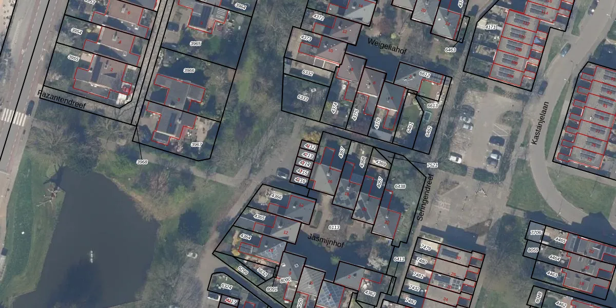 Gebruik de zoekbalk of klik op een perceel voor informatie over de adressen binnen dit perceel.