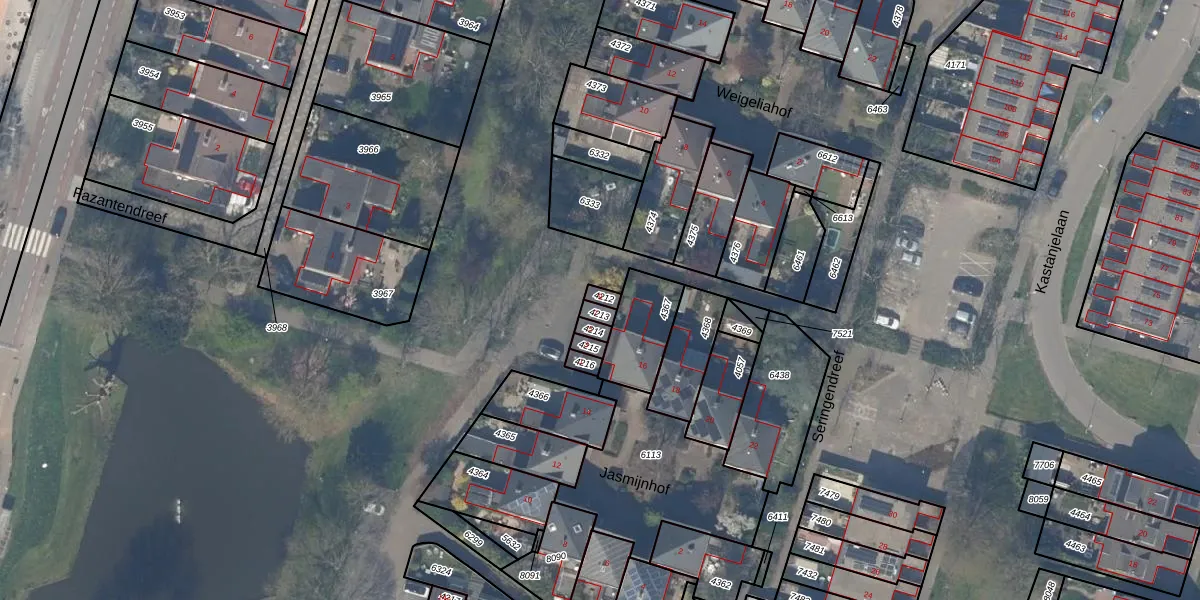 Het perceel waarop Jasmijnhof 9 staat heeft een oppervlakte van 17 m². Dit is een klein perceel. De perceeloppervlakte wordt geregistreerd door het Kadaster. Gedetailleerde informatie over de maten van dit perceel kunt u vinden in het rapport Kadastrale kaart met maatvoering van Jasmijnhof 9.