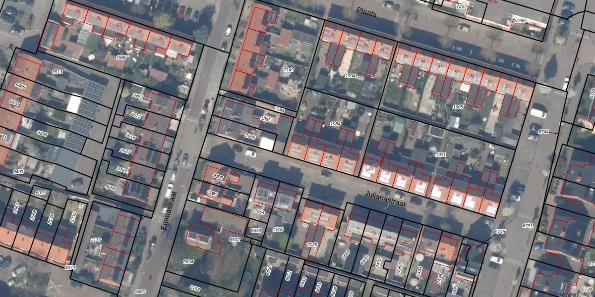 Het perceel waarop Julianastraat 2 staat heeft een oppervlakte van 631 m². Dit is een groot perceel. De perceeloppervlakte wordt geregistreerd door het Kadaster. Gedetailleerde informatie over de maten van dit perceel kunt u vinden in het rapport Kadastrale kaart met maatvoering van Julianastraat 2.