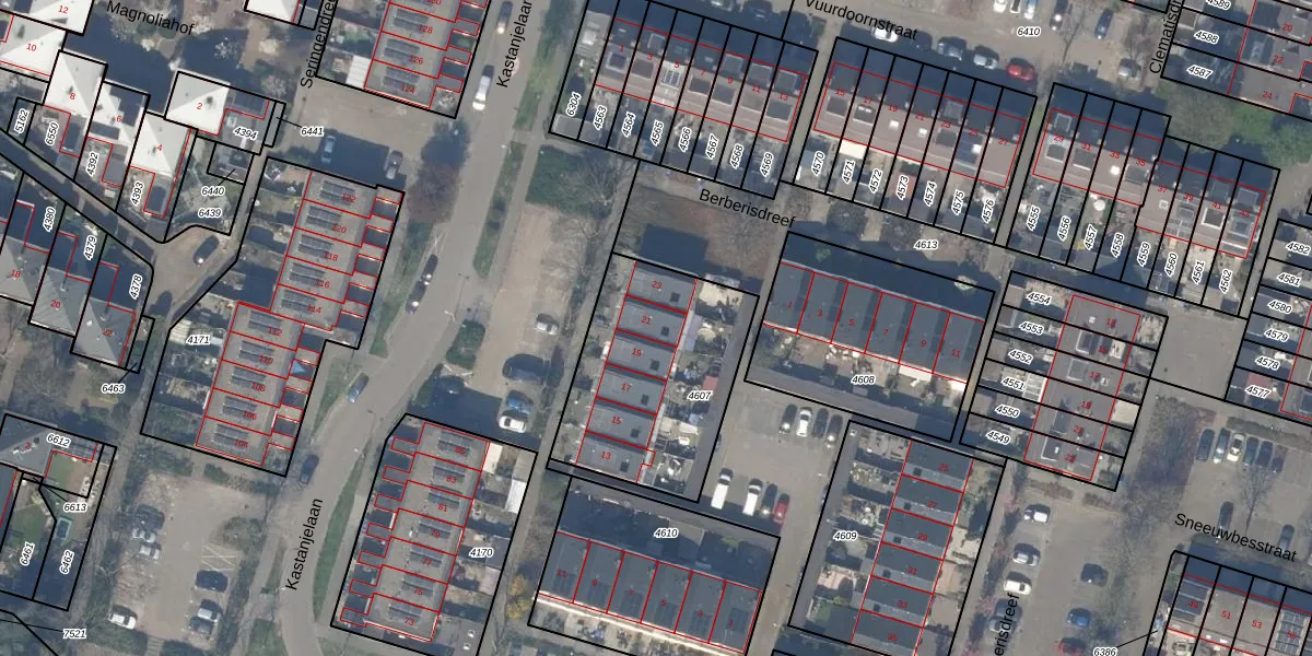 De informatie over dit adres is afkomstig uit officiële overheidsregistraties, voornamelijk de Basisregistratie Adressen en Gebouwen (BAG) en de Basisregistratie Kadaster (BRK). Deze gegevens worden beheerd door respectievelijk gemeenten en het Kadaster, en worden regelmatig bijgewerkt. Energielabelgegevens komen uit de database van de Rijksdienst voor Ondernemend Nederland (RVO).