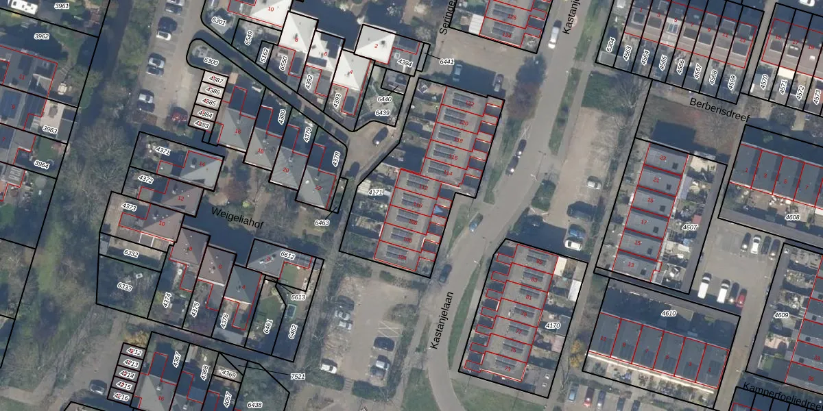 Het perceel waarop Kastanjelaan 110 staat heeft een oppervlakte van 1041 m². Dit is een zeer groot perceel. De perceeloppervlakte wordt geregistreerd door het Kadaster. Gedetailleerde informatie over de maten van dit perceel kunt u vinden in het rapport Kadastrale kaart met maatvoering van Kastanjelaan 110.