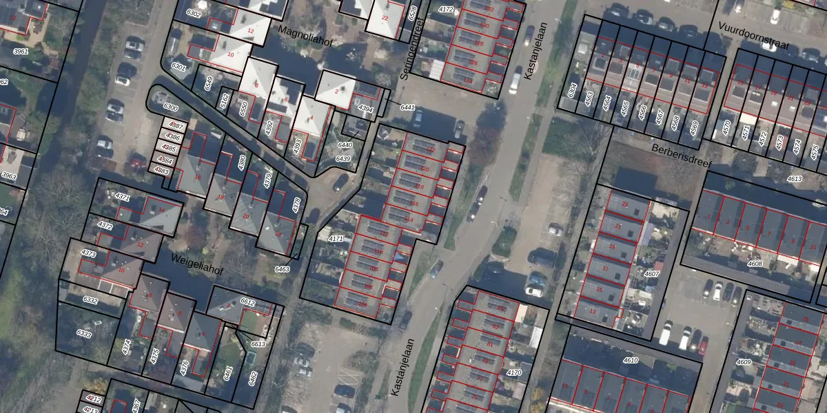Het perceel waarop Kastanjelaan 116 staat heeft een oppervlakte van 1041 m². Dit is een zeer groot perceel. De perceeloppervlakte wordt geregistreerd door het Kadaster. Gedetailleerde informatie over de maten van dit perceel kunt u vinden in het rapport Kadastrale kaart met maatvoering van Kastanjelaan 116.