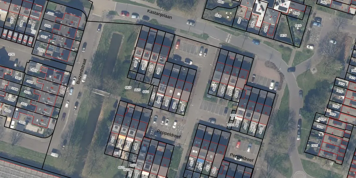 Het perceel waarop Kastanjelaan 13 staat heeft een oppervlakte van 119 m². Dit is een middelgroot perceel. De perceeloppervlakte wordt geregistreerd door het Kadaster. Gedetailleerde informatie over de maten van dit perceel kunt u vinden in het rapport Kadastrale kaart met maatvoering van Kastanjelaan 13.