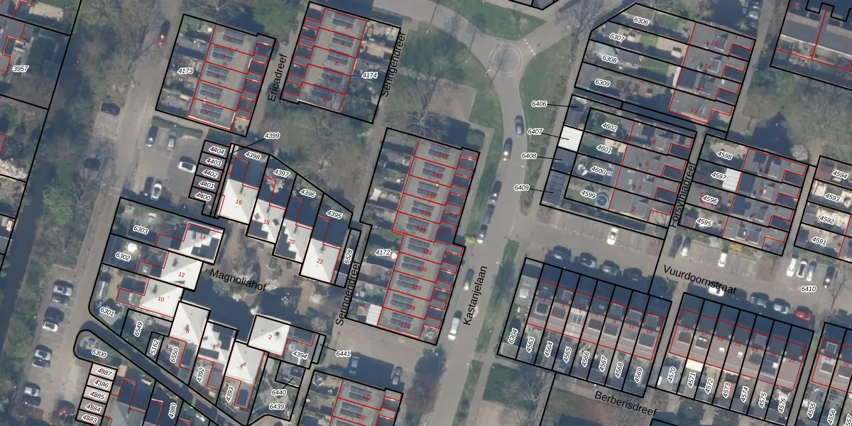 Het perceel waarop Kastanjelaan 136 staat heeft een oppervlakte van 1031 m². Dit is een zeer groot perceel. De perceeloppervlakte wordt geregistreerd door het Kadaster. Gedetailleerde informatie over de maten van dit perceel kunt u vinden in het rapport Kadastrale kaart met maatvoering van Kastanjelaan 136.
