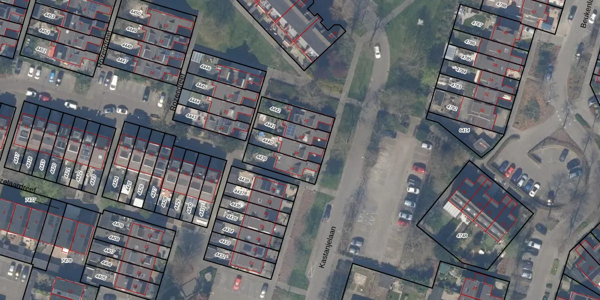 Het perceel waarop Kastanjelaan 38 staat heeft een oppervlakte van 138 m². Dit is een middelgroot perceel. De perceeloppervlakte wordt geregistreerd door het Kadaster. Gedetailleerde informatie over de maten van dit perceel kunt u vinden in het rapport Kadastrale kaart met maatvoering van Kastanjelaan 38.