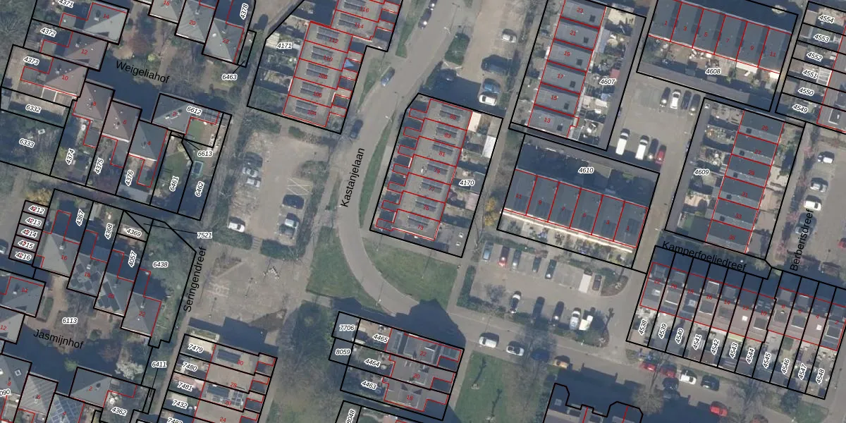 Het perceel waarop Kastanjelaan 75 staat heeft een oppervlakte van 780 m². Dit is een groot perceel. De perceeloppervlakte wordt geregistreerd door het Kadaster. Gedetailleerde informatie over de maten van dit perceel kunt u vinden in het rapport Kadastrale kaart met maatvoering van Kastanjelaan 75.