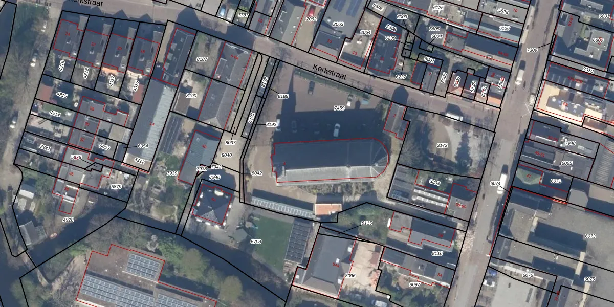 Het perceel waarop Kerkstraat 4 staat heeft een oppervlakte van 2099 m². Dit is een zeer groot perceel. De perceeloppervlakte wordt geregistreerd door het Kadaster. Gedetailleerde informatie over de maten van dit perceel kunt u vinden in het rapport Kadastrale kaart met maatvoering van Kerkstraat 4.