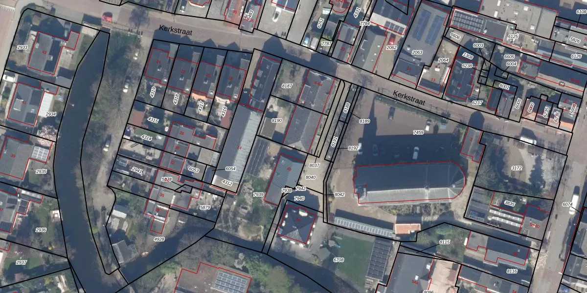 Het perceel waarop Kerkstraat 6 staat heeft een oppervlakte van 303 m². Dit is een groot perceel. De perceeloppervlakte wordt geregistreerd door het Kadaster. Gedetailleerde informatie over de maten van dit perceel kunt u vinden in het rapport Kadastrale kaart met maatvoering van Kerkstraat 6.
