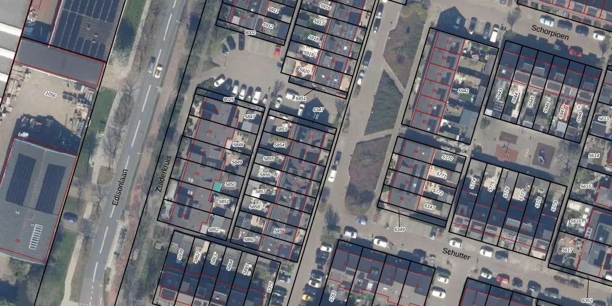 Gebruik de zoekbalk of klik op een perceel voor informatie over de adressen binnen dit perceel.