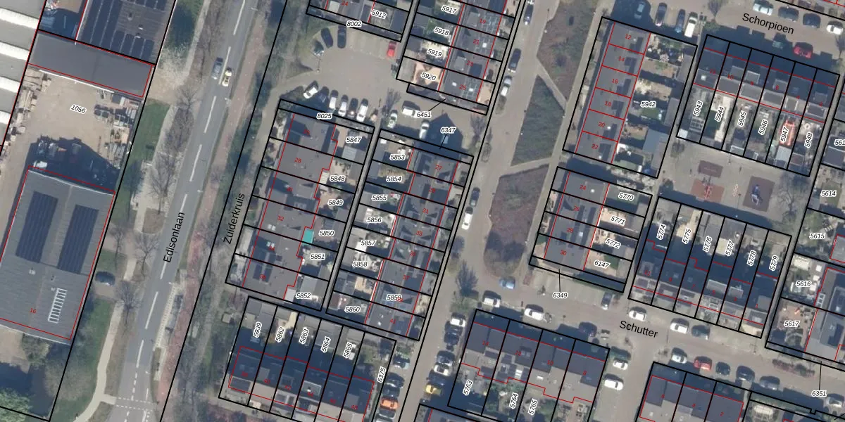Gebruik de zoekbalk of klik op een perceel voor informatie over de adressen binnen dit perceel.