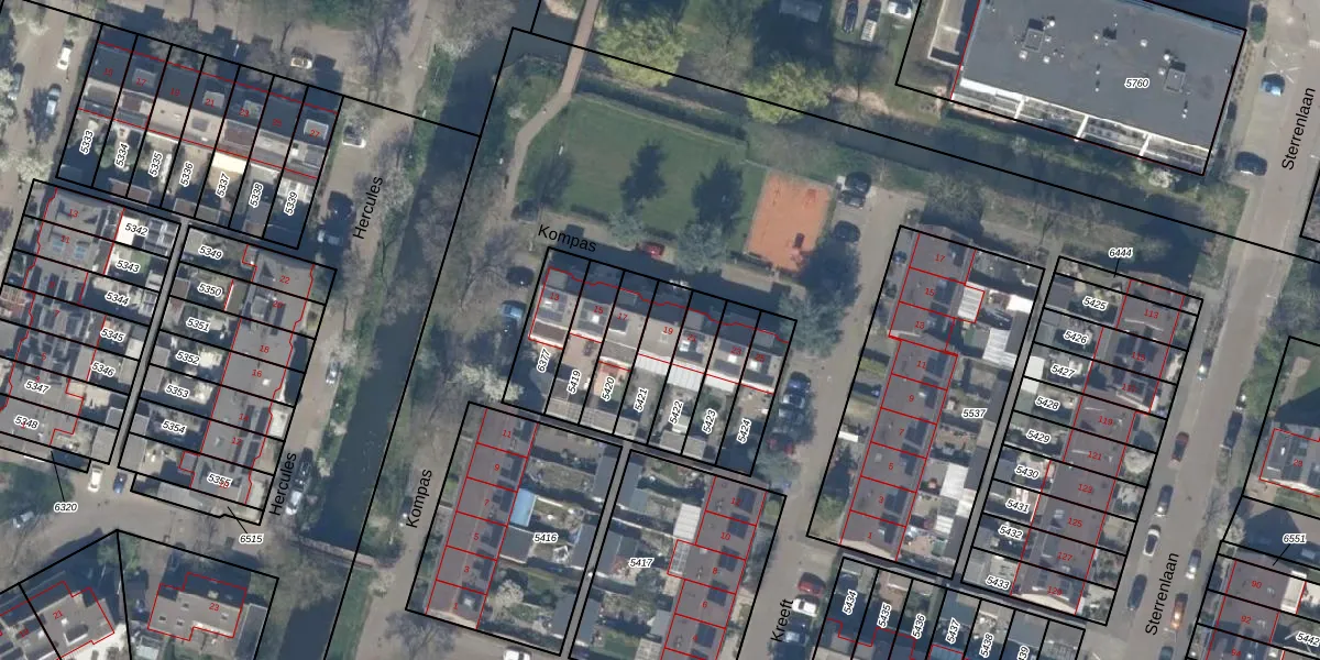 Gebruik de zoekbalk of klik op een perceel voor informatie over de adressen binnen dit perceel.