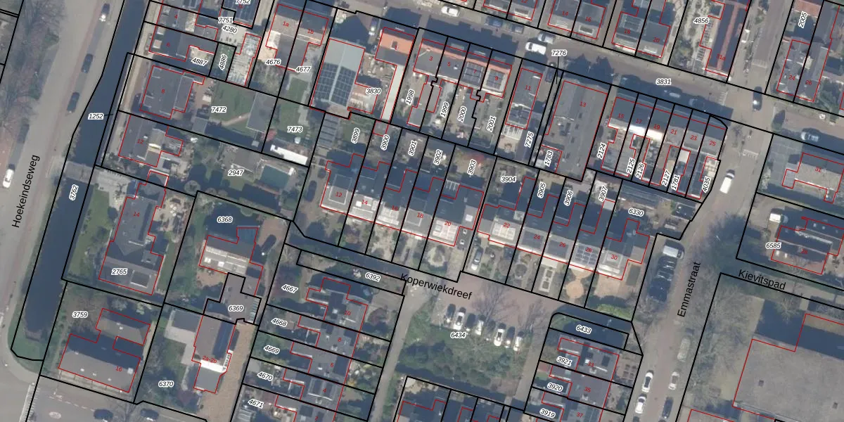 Gebruik de zoekbalk of klik op een perceel voor informatie over de adressen binnen dit perceel.