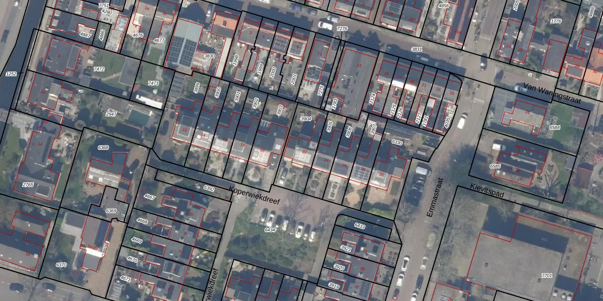 Gebruik de zoekbalk of klik op een perceel voor informatie over de adressen binnen dit perceel.