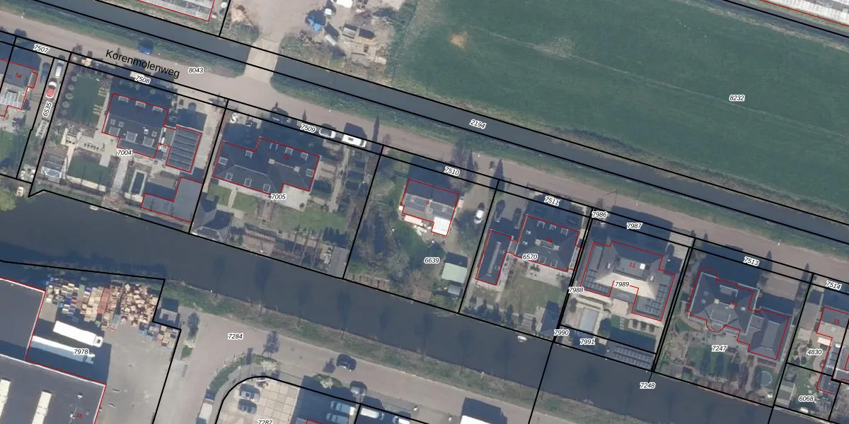 Het perceel waarop Korenmolenweg 9 staat heeft een oppervlakte van 869 m². Dit is een groot perceel. De perceeloppervlakte wordt geregistreerd door het Kadaster. Gedetailleerde informatie over de maten van dit perceel kunt u vinden in het rapport Kadastrale kaart met maatvoering van Korenmolenweg 9.