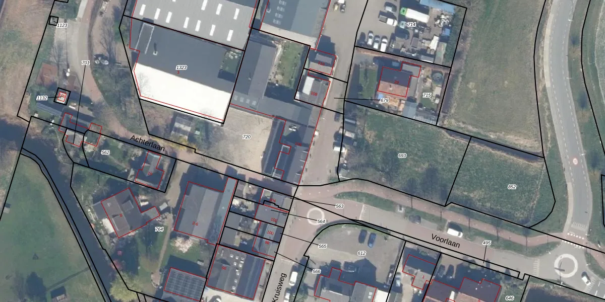 Kruisweg 106 is gelegen op kadastraal perceel BWK02A720. Deze kadastrale aanduiding is uniek en wordt gebruikt door het Kadaster om eigendomsrechten en andere zakelijke rechten vast te leggen. Het perceel maakt onderdeel uit van de kadastrale gemeente Bleiswijk.