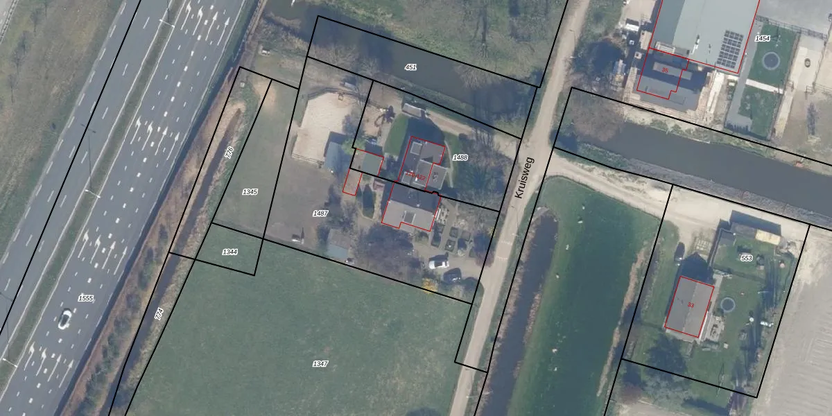 Het perceel waarop Kruisweg 120 staat heeft een oppervlakte van 1524 m². Dit is een zeer groot perceel. De perceeloppervlakte wordt geregistreerd door het Kadaster. Gedetailleerde informatie over de maten van dit perceel kunt u vinden in het rapport Kadastrale kaart met maatvoering van Kruisweg 120.
