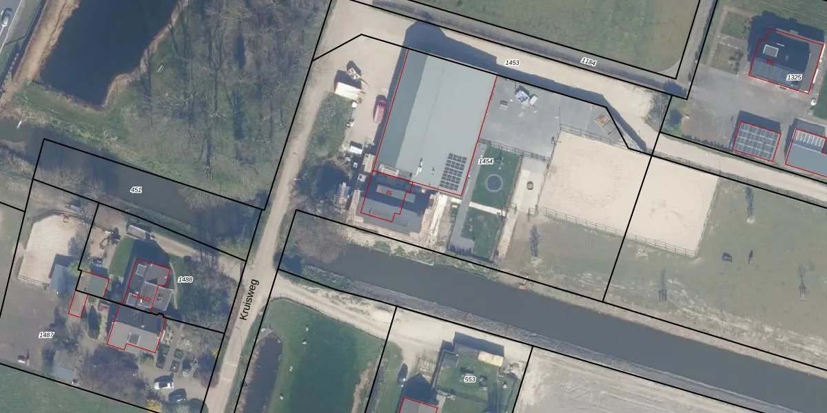 Het perceel waarop Kruisweg 35 staat heeft een oppervlakte van 4250 m². Dit is een zeer groot perceel. De perceeloppervlakte wordt geregistreerd door het Kadaster. Gedetailleerde informatie over de maten van dit perceel kunt u vinden in het rapport Kadastrale kaart met maatvoering van Kruisweg 35.