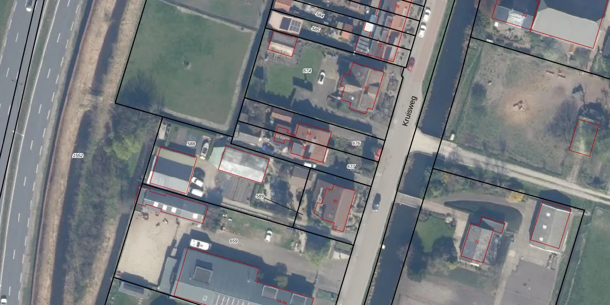 Het perceel waarop Kruisweg 62 staat heeft een oppervlakte van 387 m². Dit is een groot perceel. De perceeloppervlakte wordt geregistreerd door het Kadaster. Gedetailleerde informatie over de maten van dit perceel kunt u vinden in het rapport Kadastrale kaart met maatvoering van Kruisweg 62.