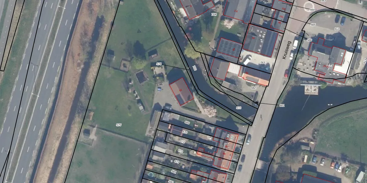 Het perceel waarop Kruisweg 92 staat heeft een oppervlakte van 6450 m². Dit is een zeer groot perceel. De perceeloppervlakte wordt geregistreerd door het Kadaster. Gedetailleerde informatie over de maten van dit perceel kunt u vinden in het rapport Kadastrale kaart met maatvoering van Kruisweg 92.