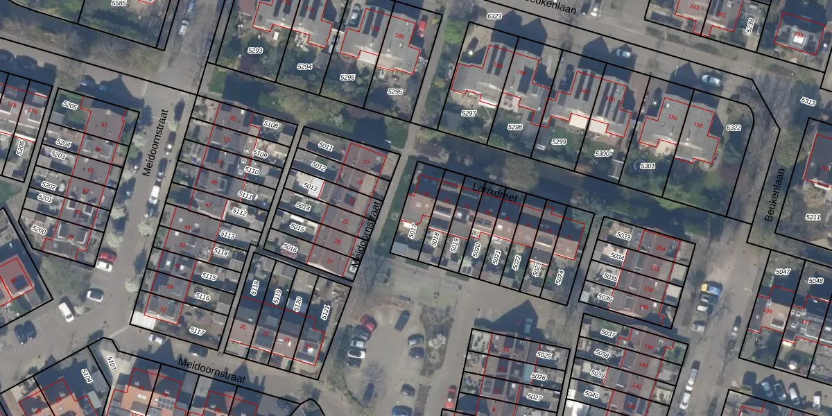 Het perceel waarop Larixdreef 16 staat heeft een oppervlakte van 161 m². Dit is een middelgroot perceel. De perceeloppervlakte wordt geregistreerd door het Kadaster. Gedetailleerde informatie over de maten van dit perceel kunt u vinden in het rapport Kadastrale kaart met maatvoering van Larixdreef 16.