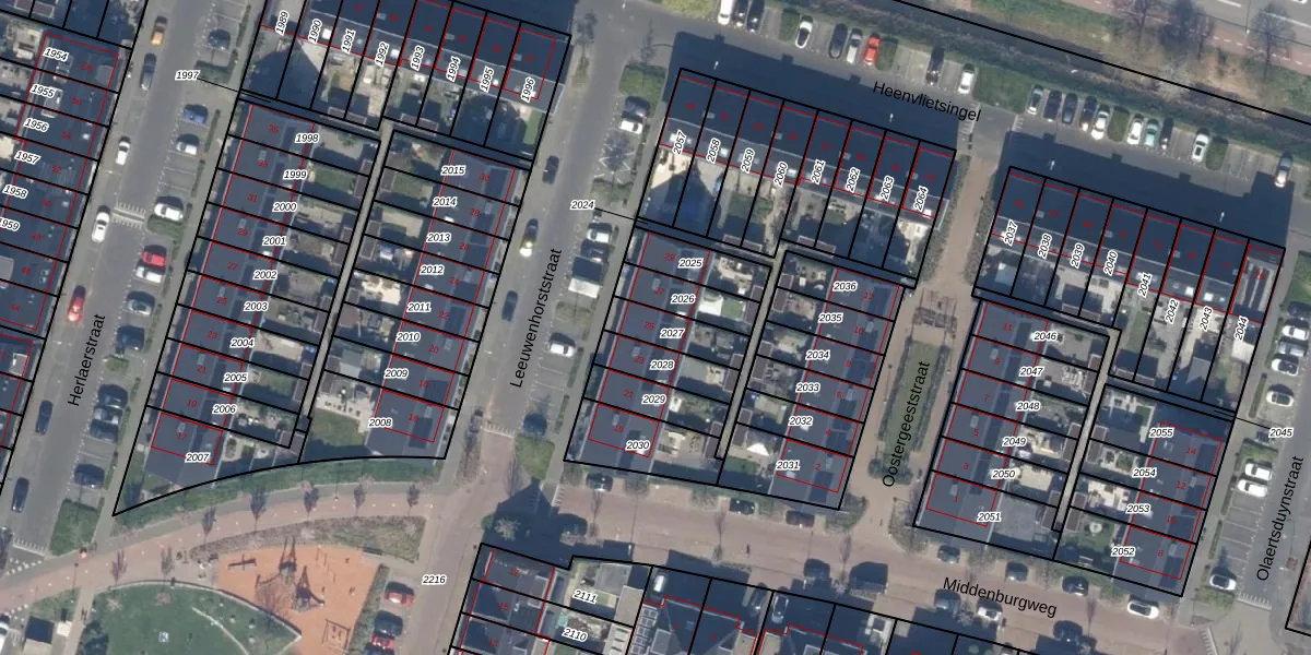 Gebruik de zoekbalk of klik op een perceel voor informatie over de adressen binnen dit perceel.