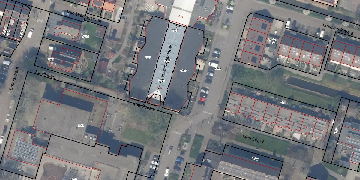 Het perceel waarop Leeuwerikstraat 12 staat heeft een oppervlakte van 565 m². Dit is een groot perceel. De perceeloppervlakte wordt geregistreerd door het Kadaster. Gedetailleerde informatie over de maten van dit perceel kunt u vinden in het rapport Kadastrale kaart met maatvoering van Leeuwerikstraat 12.