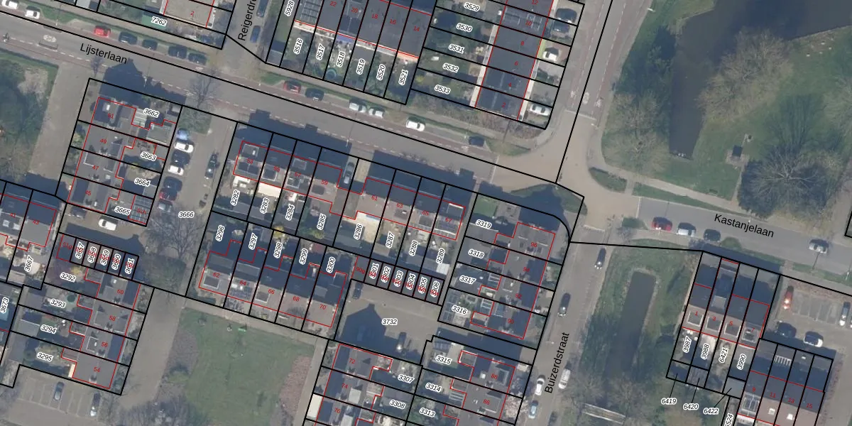Gebruik de zoekbalk of klik op een perceel voor informatie over de adressen binnen dit perceel.