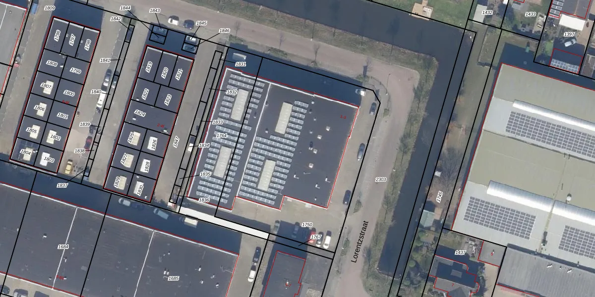 Het perceel waarop Lorentzstraat 1 staat heeft een oppervlakte van 2338 m². Dit is een zeer groot perceel. De perceeloppervlakte wordt geregistreerd door het Kadaster. Gedetailleerde informatie over de maten van dit perceel kunt u vinden in het rapport Kadastrale kaart met maatvoering van Lorentzstraat 1.