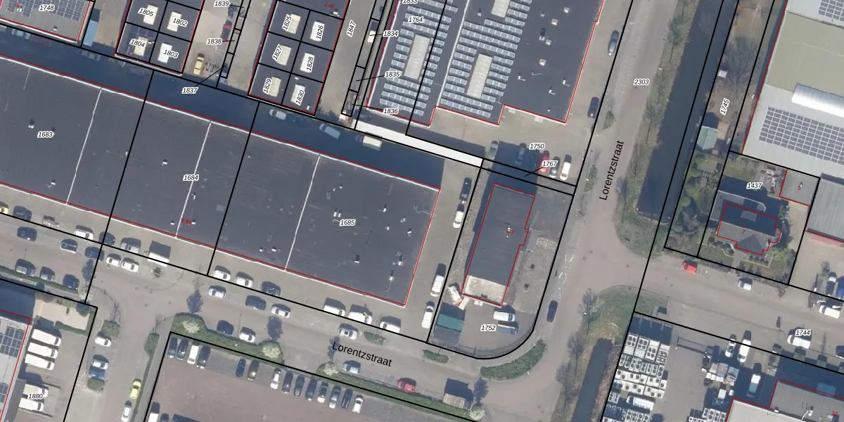 Het perceel waarop Lorentzstraat 17 staat heeft een oppervlakte van 2360 m². Dit is een zeer groot perceel. De perceeloppervlakte wordt geregistreerd door het Kadaster. Gedetailleerde informatie over de maten van dit perceel kunt u vinden in het rapport Kadastrale kaart met maatvoering van Lorentzstraat 17.